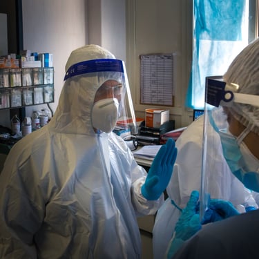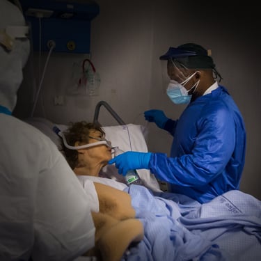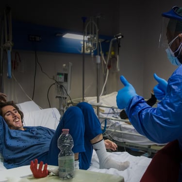 Padiglione Marchiafava reparto di Pneumologia - qui dall’inizio della pandemia per 24 ore al giorno si gioca la partita che porta alla dimissione oppure, al contrario, alla terapia intensiva e tutti, medici, infermieri e pazienti sono consapevoli degli esiti che la battaglia contro questo nemico invisibile può comportare.